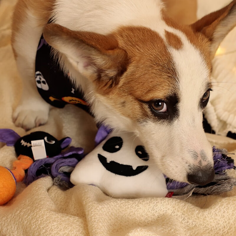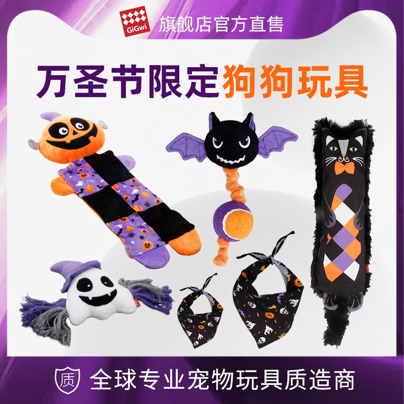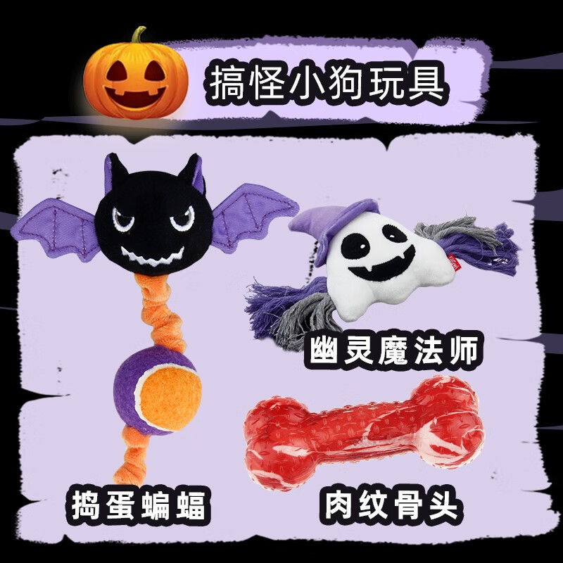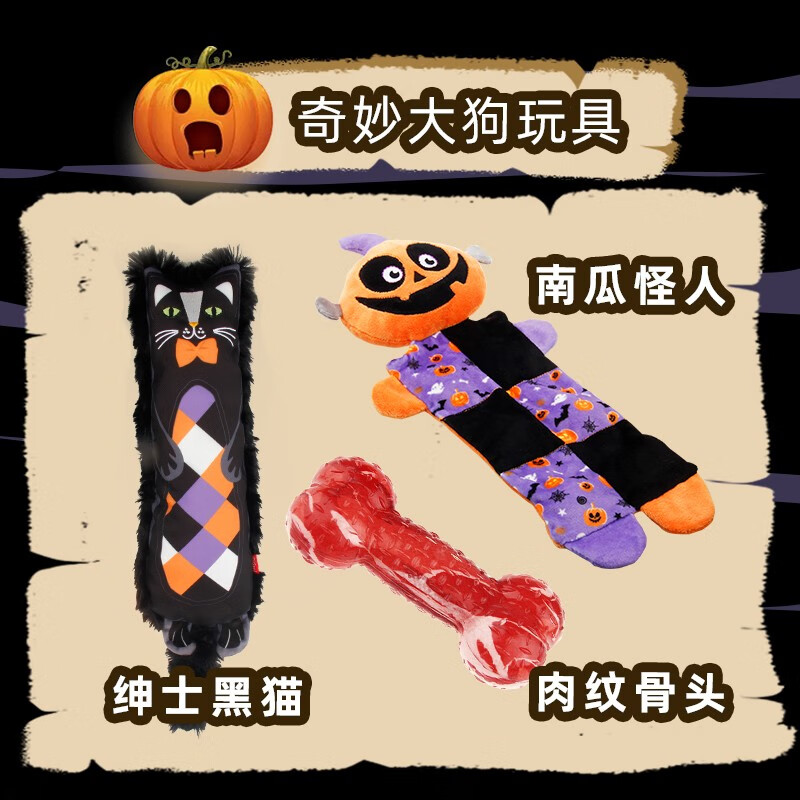 GiGwi贵为万圣节限定狗狗玩具毛绒发声响纸磨牙耐咬解闷宠物玩具宠物用品 肉纹骨头L(中大型犬玩具)