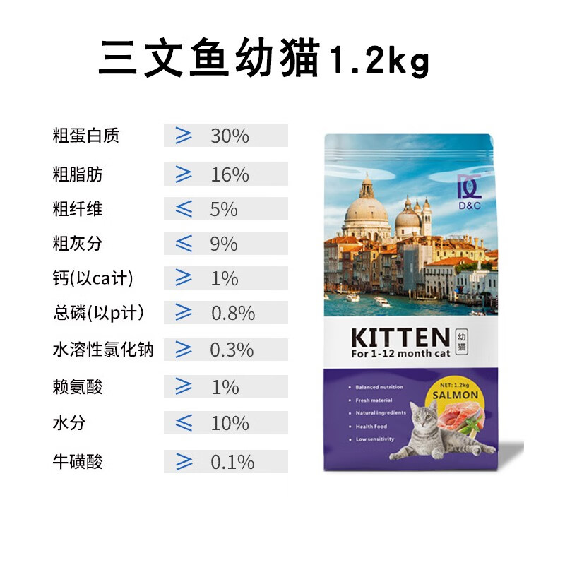 帝熙全价猫粮天然室内鸡肉猫粮呵护肠胃成猫家猫幼猫猫粮英短布偶 三文鱼幼猫1.2kg