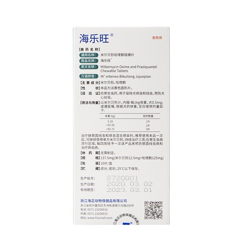 海正动保HISUN海乐旺 狗狗驱虫药体内外一体宠物驱虫大小型犬用打虫药 泰迪驱虫药 137.5mg(5-25kg用)整盒10粒装