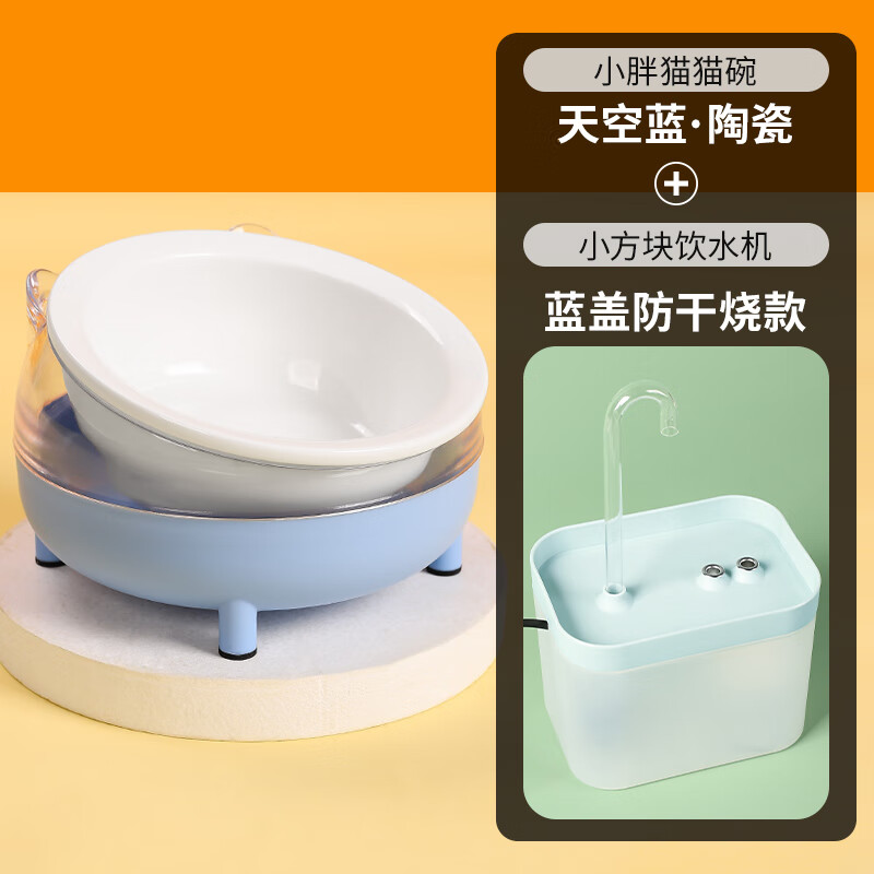 猫咪饮水机自动循环流动智能饮水器活水电动喝水狗狗水盆宠物用品 天蓝色【陶瓷碗体】 蓝盖小方块饮水机