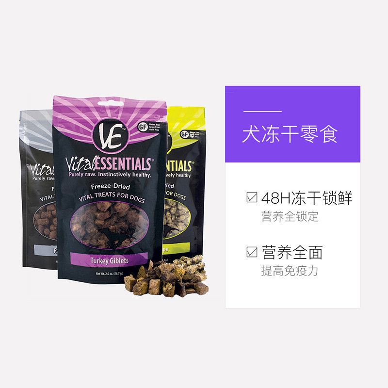 官方授权美国 Vital Essentials冻干狗零食兔肉牛鞭火鸡内脏牛肚