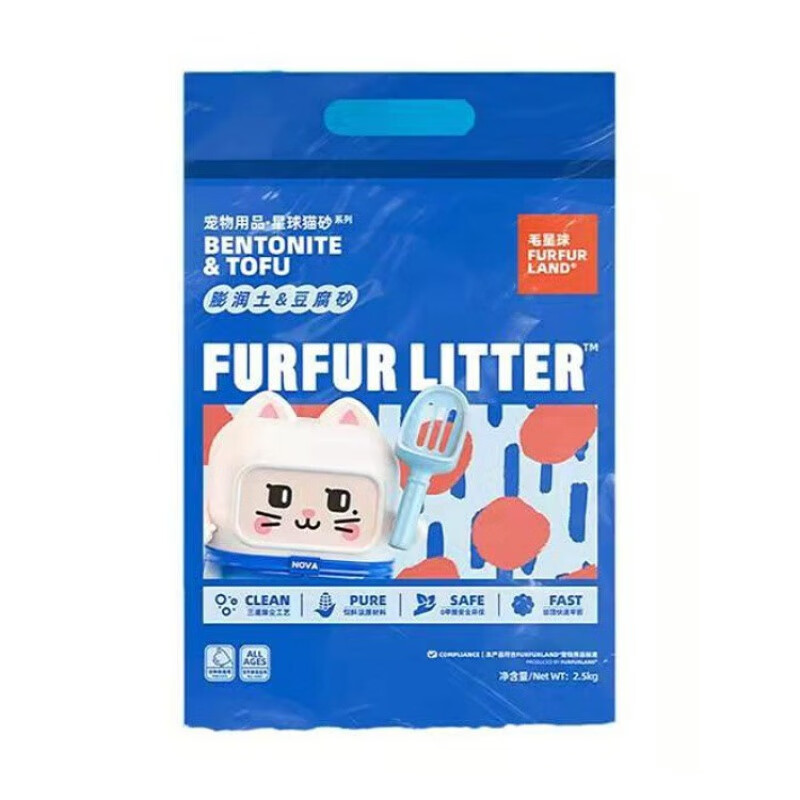 贝意品FUR毛星球猫砂吸水纳基膨润土结团豆腐 混合猫砂可冲马桶猫沙 毛星球原味2.5kg4包装