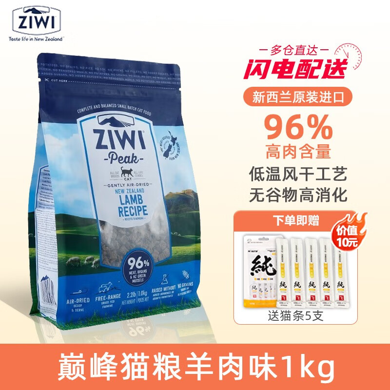 滋益巅峰(ZIWI)猫粮新西兰进口无谷风干肉粮布偶加菲英短美短幼猫成猫猫咪主粮 羊肉1kg