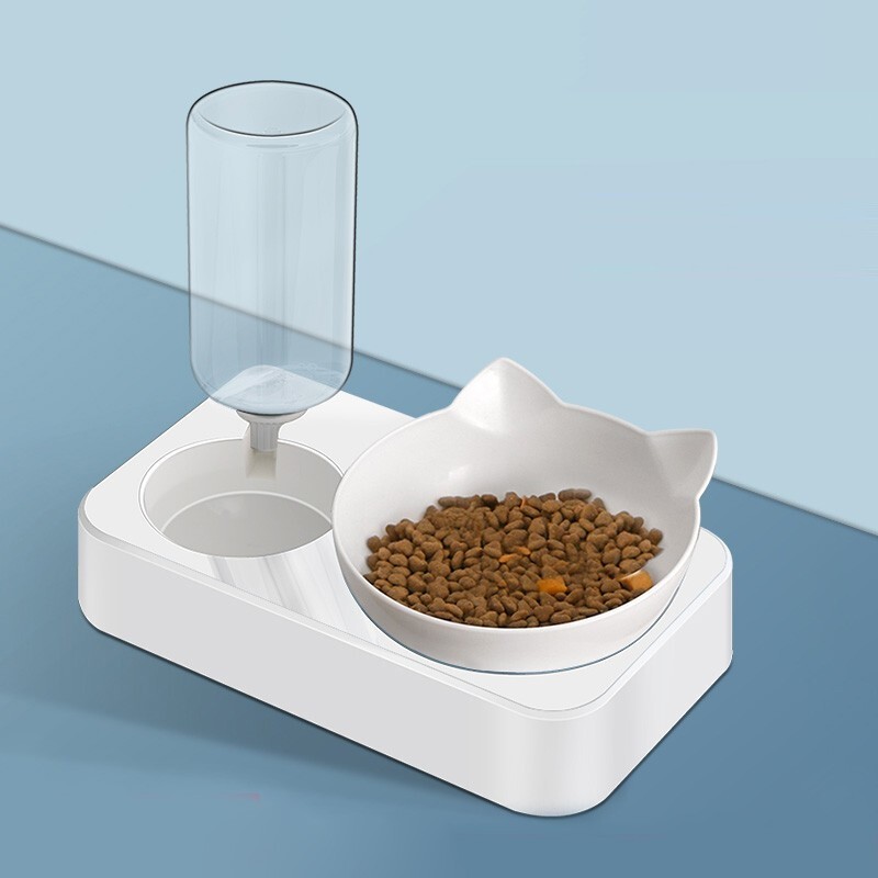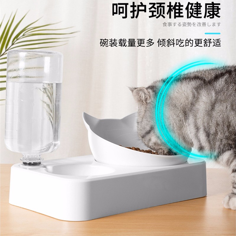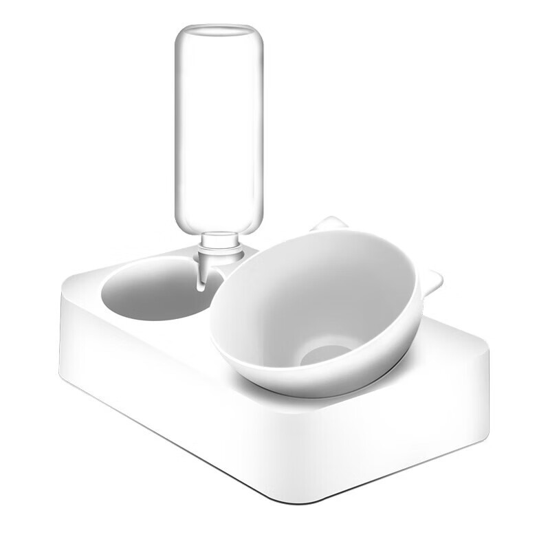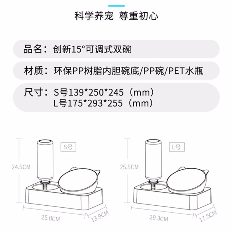 迪普尔 宠物狗碗狗盆猫碗猫盆猫咪狗狗自动饮水喝水用品泰迪狗食盆双碗饭盆 猫耳带瓶碗小号 *