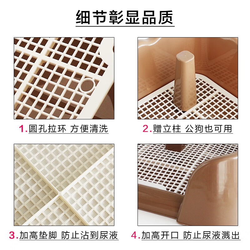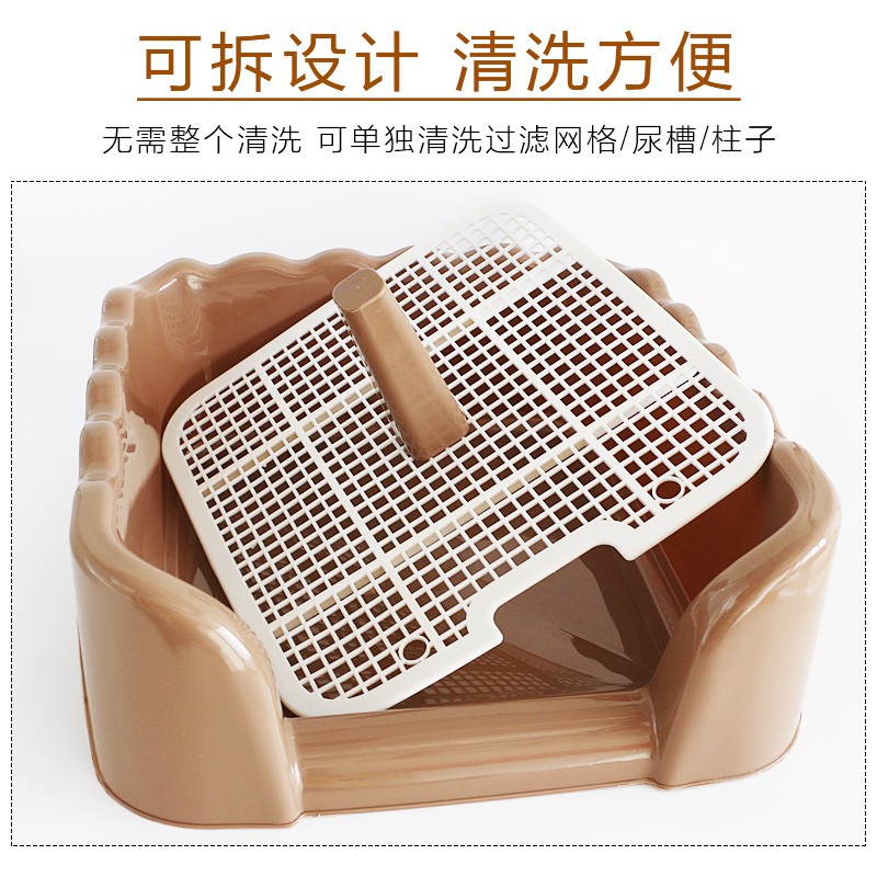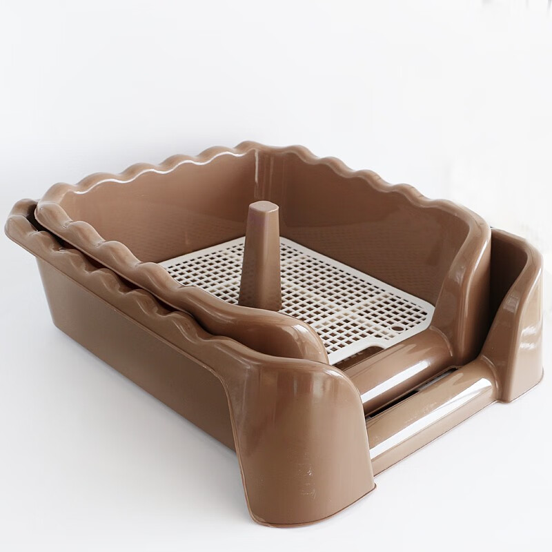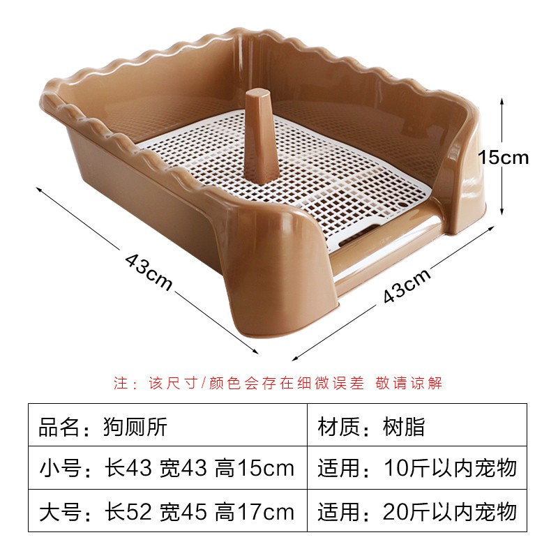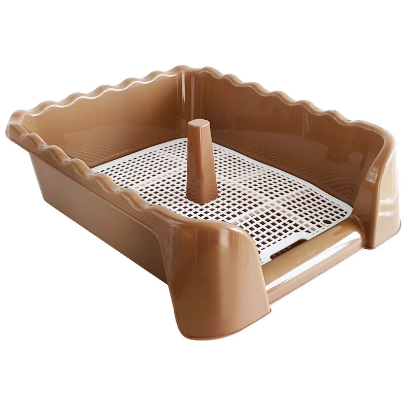 贝尼宠 狗厕所宠物防溅便盆狗狗尿盆小型犬中大型犬幼犬泰迪公母通用 防喷溅咖色小号-43*43*15cm