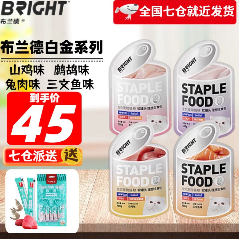 布兰德猫湿粮软罐头猫主食罐头猫咪生骨肉白金主食包全期全阶段全肉猫粮 四种口味组合装100g*4袋