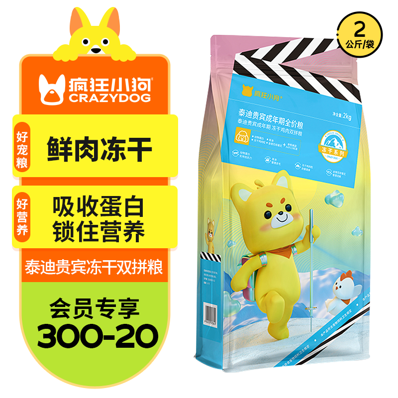 疯狂的小狗冻干狗粮2kg双拼小型犬粮通用型泰迪柯基专用宠物粮 冻干系列--泰迪贵宾专用