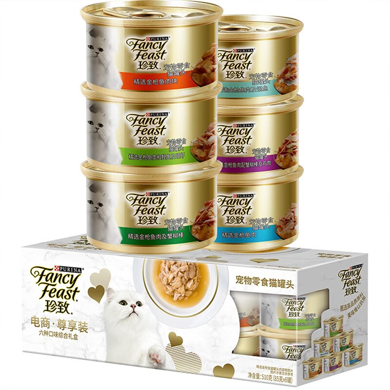 珍致(FancyFeast)猫罐头猫咪零食鱼肉明虾6罐整箱宠物猫粮猫咪主食罐湿粮 混合口味*24罐 85g/罐