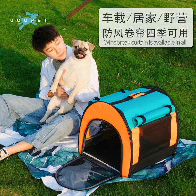 波奇多大号柯基狗包冬包外出便携携带宠物手提车载包大容量两只猫咪-定 湖蓝拼橙色