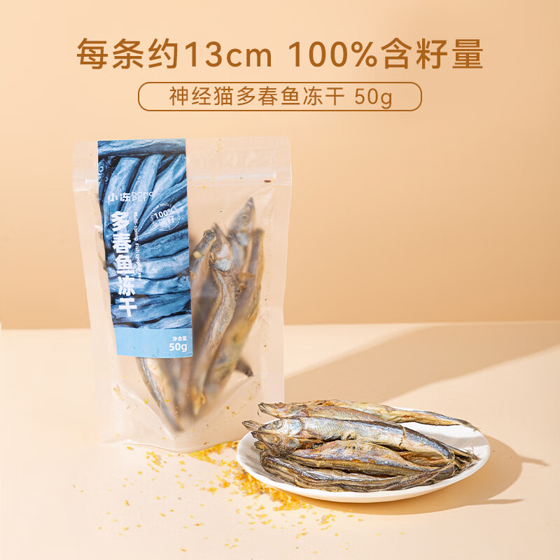 脆氏神经猫多春鱼冻干小鱼干猫零食猫咪零食满籽无盐增肥发腮补钙幼猫 【净含量50g】100%鱼籽量 100g
