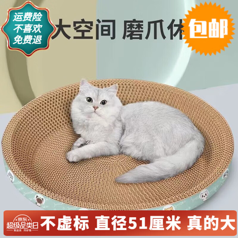 猫抓板窝特大号猫玩具猫爪板猫抓盆不掉屑猫窝碗形圆形瓦楞纸耐磨宠物磨爪器 【特大号】直径51厘米