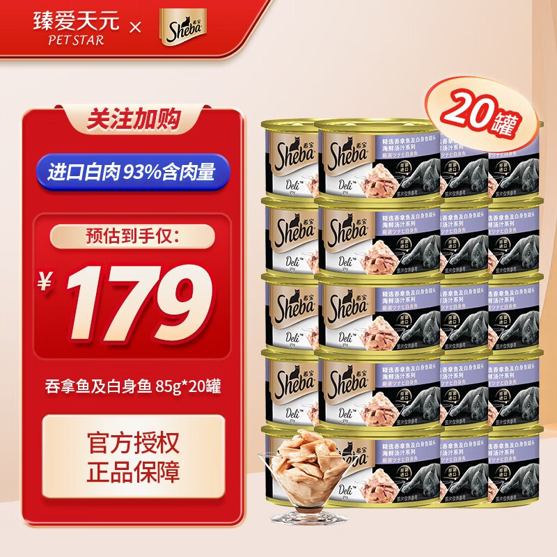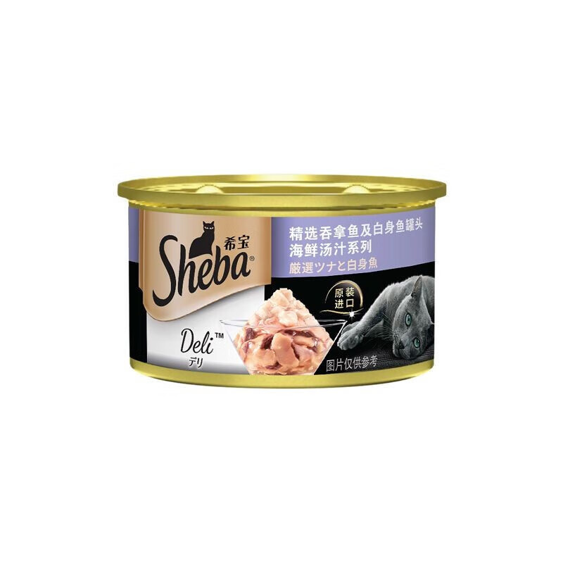希宝(Sheba)猫罐头sheba猫湿粮猫零食 吞拿鱼及白身鱼 海鲜汤汁85g*20