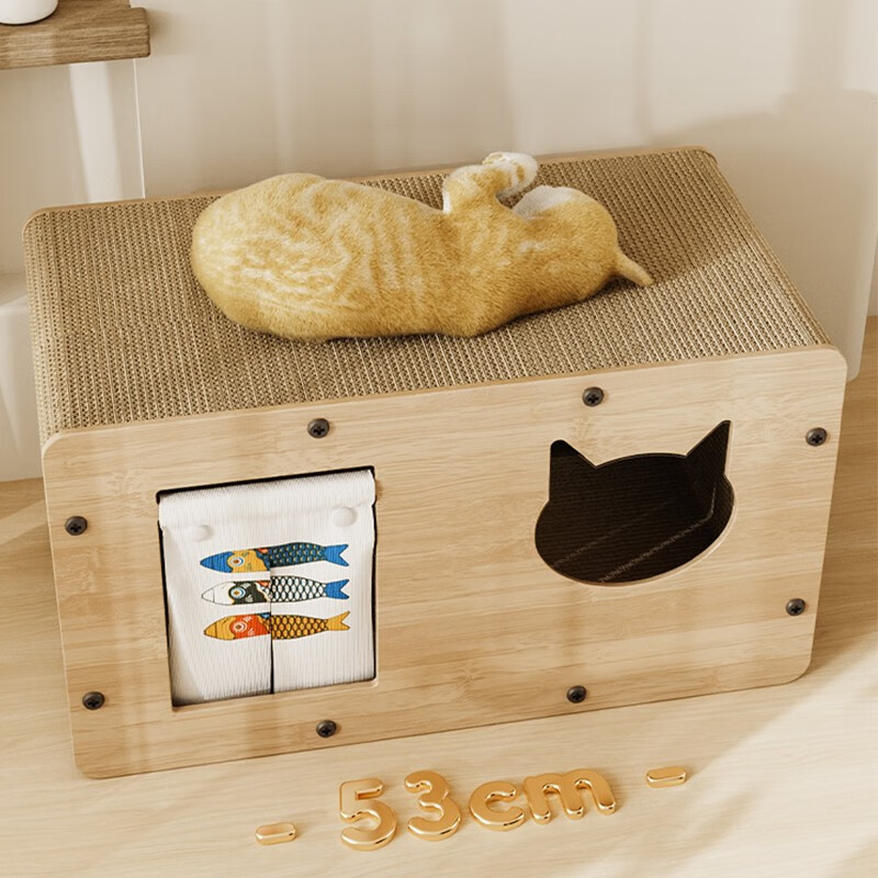 猫抓板猫窝一体耐磨不掉屑立式双层木质猫屋瓦楞纸猫咪猫爪板玩具剑麻封闭式四季通用 好多鱼猫抓板窝