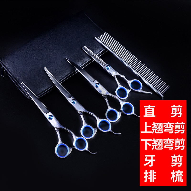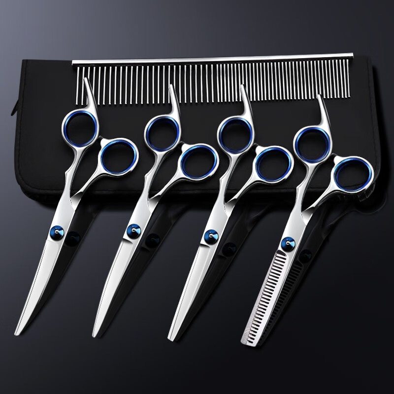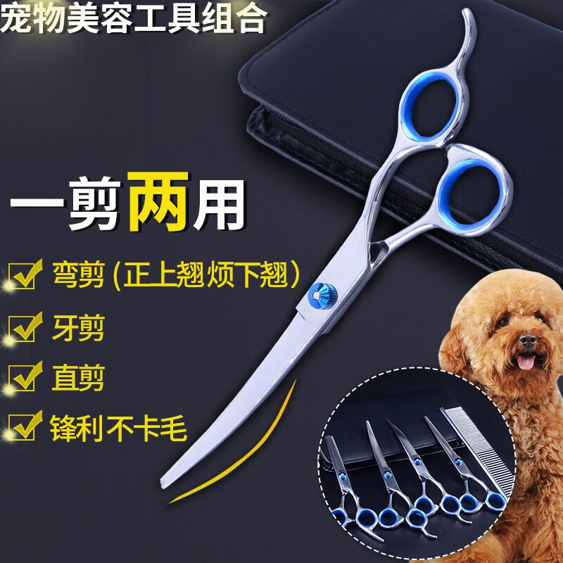 米小舒宠物美容剪刀猫咪狗狗修毛剪刀套装剪子狗梳子牙剪直剪美发剪修毛剪工具猫毛弯剪刀泰迪理发6寸7寸 豪华6件套(直剪 牙剪 上弯 下弯 剪包 钢梳)