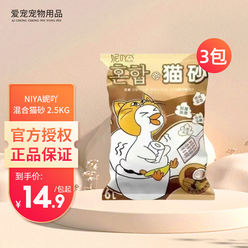 妮吖猫砂2.5kg 混合猫砂豆腐猫砂除臭无尘易结团可冲马桶猫沙豆腐砂 【椰奶花生】混合猫砂 2.5kg*3包