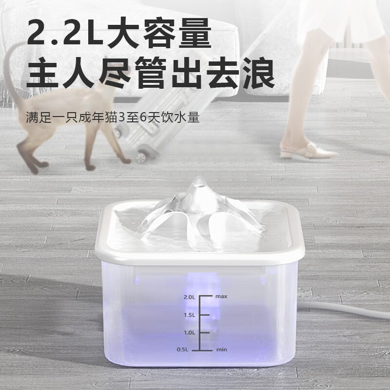 优宠(Yopet)宠物猫咪饮水机 无线感应自动循环流动活水过滤 狗狗宠物碗喂水器 基础第一代丨海星插电款