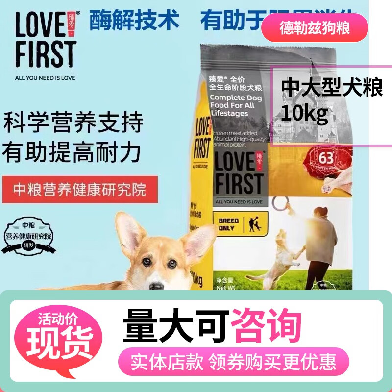 实体供货德勒兹臻爱63全价狗粮H5成犬粮H8幼犬粮鲜肉酶解低敏易消 德勒兹63狗粮10kg 全阶段 中大型犬
