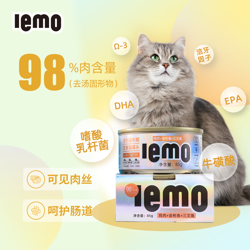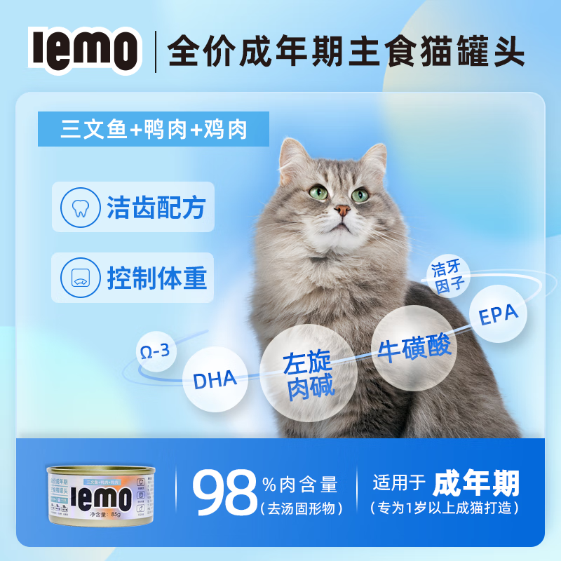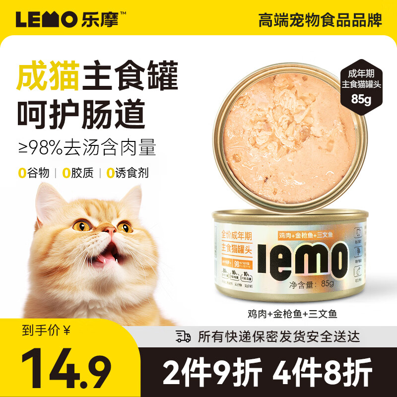 乐摩lemo乐摩 全价主食猫罐成猫无谷冻干营养猫罐头猫咪主食罐头肉泥 鸡肉金枪鱼三文鱼*1