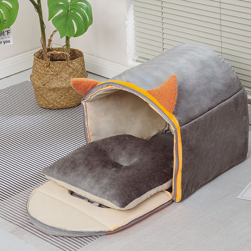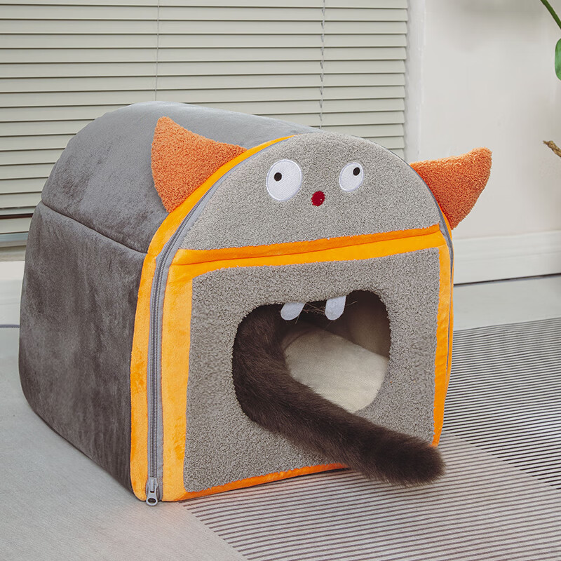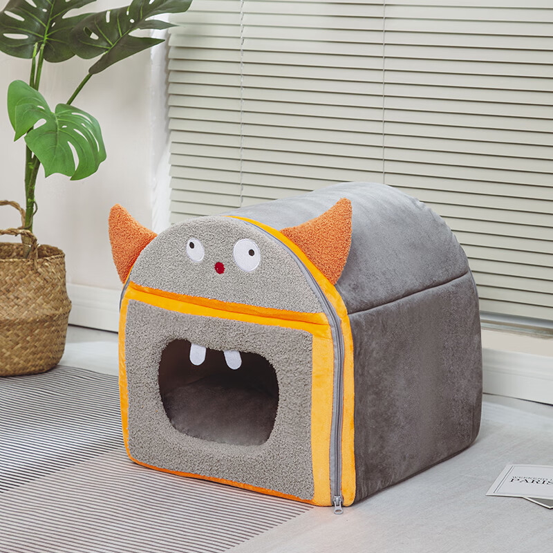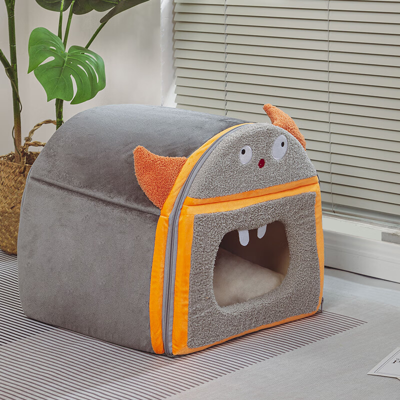 汤琪(TANGQI)猫窝冬季保暖全封闭式猫舍猫屋房子型可拆洗狗窝小型犬宠物用品 怪兽蒙古包(灰色小号)