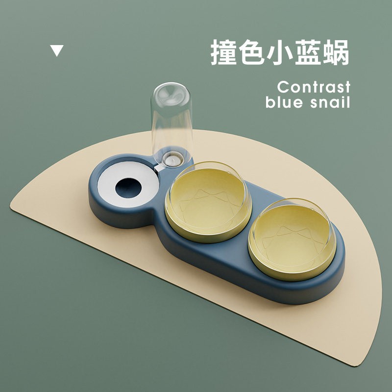 凡可奇猫碗双碗自动饮水狗狗碗食盆防打翻猫粮猫咪碗狗饭盆用品 黄蓝色