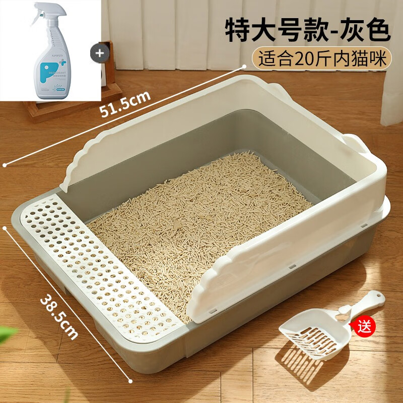 KimPets猫砂盆半封闭式防带砂猫厕所猫咪用品幼猫屎盆超大号隔臭便盆 灰色特大号 除臭祛味喷雾 无规格