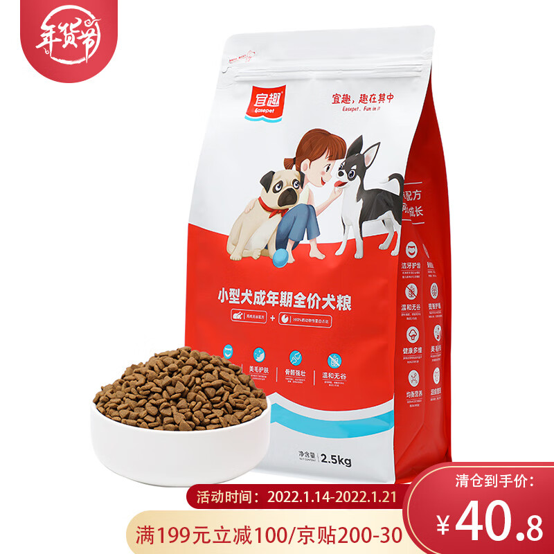 宜趣 小型犬成年期全价犬粮2.5kg 狗粮 泰迪 贵宾 比熊 雪纳瑞 吉娃娃 杜宾 小颗粒小型犬专用 5斤密封装