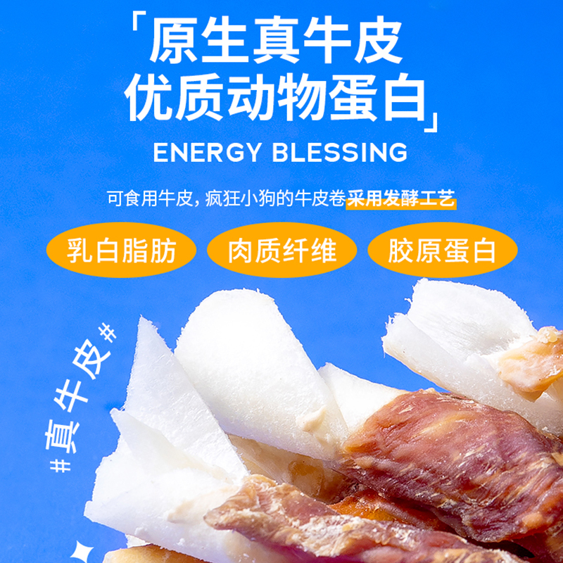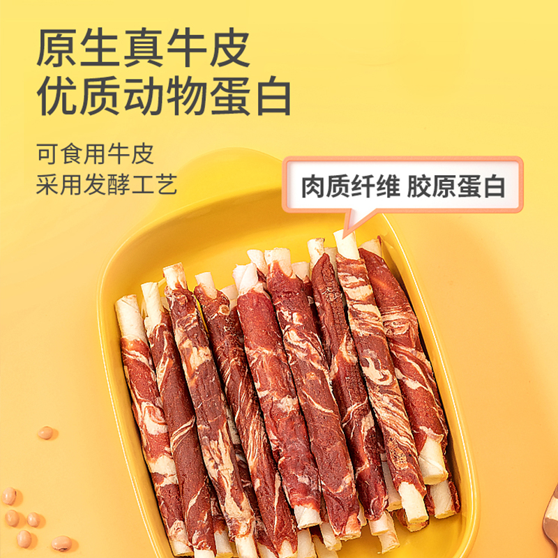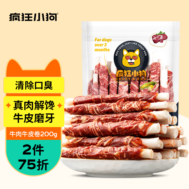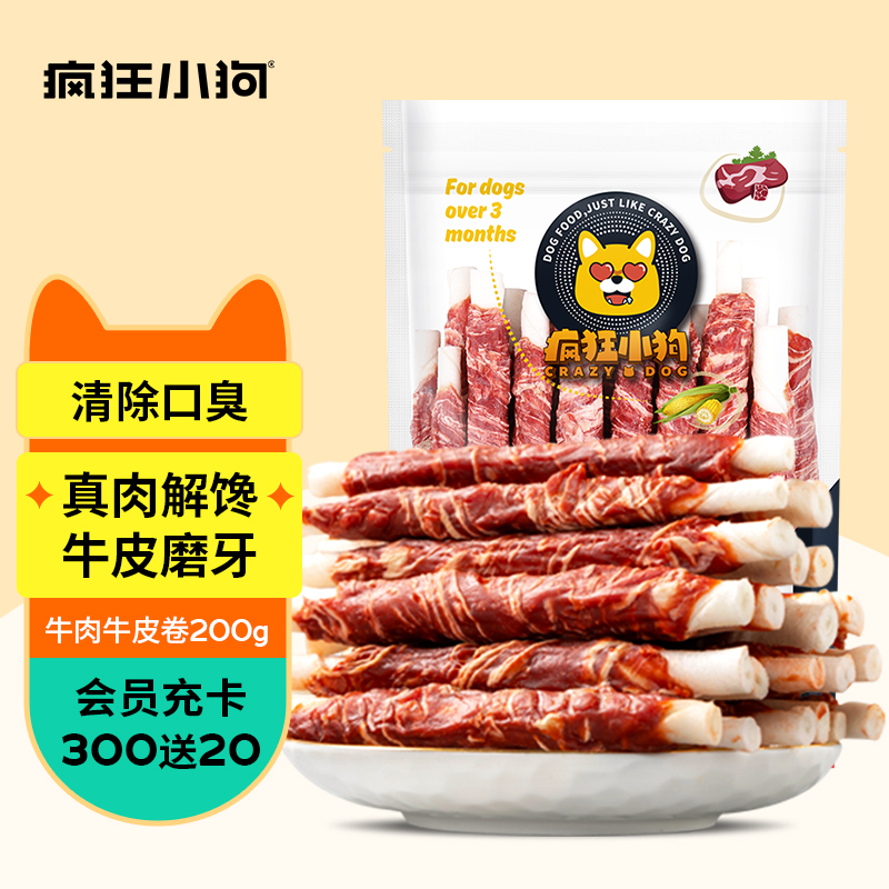 疯狂小狗 狗狗零食宠物泰迪金毛成犬幼犬肉干咬胶磨牙棒 牛肉绕牛皮卷200g