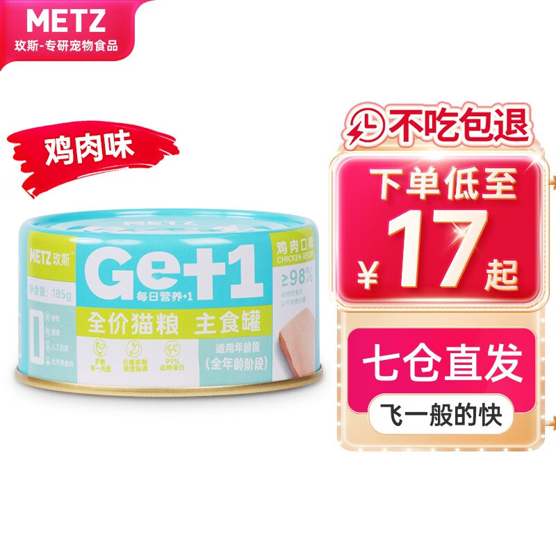 玫斯(metz)全价猫粮主食罐成猫幼猫营养湿粮猫罐全价猫主食罐生骨肉罐猫 鸡肉味(185g)