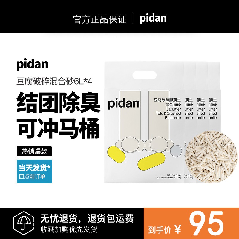pidan宠物猫砂猫咪清洁豆腐破碎膨润土混合猫砂6L*4包 新升级破碎混合砂-四包装