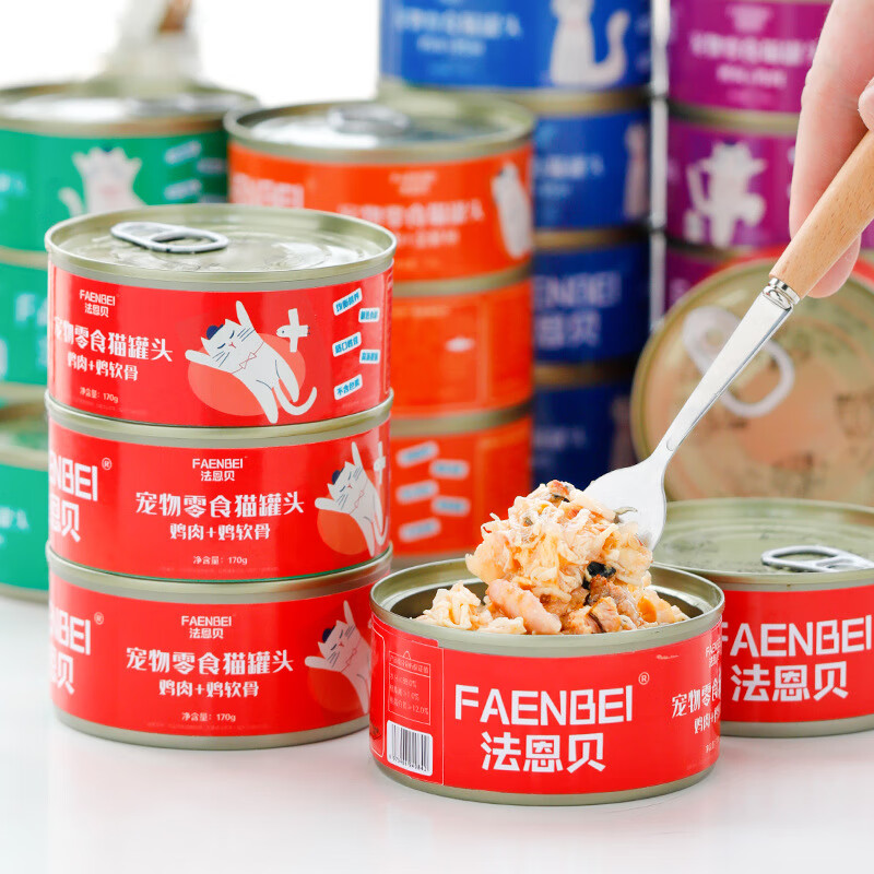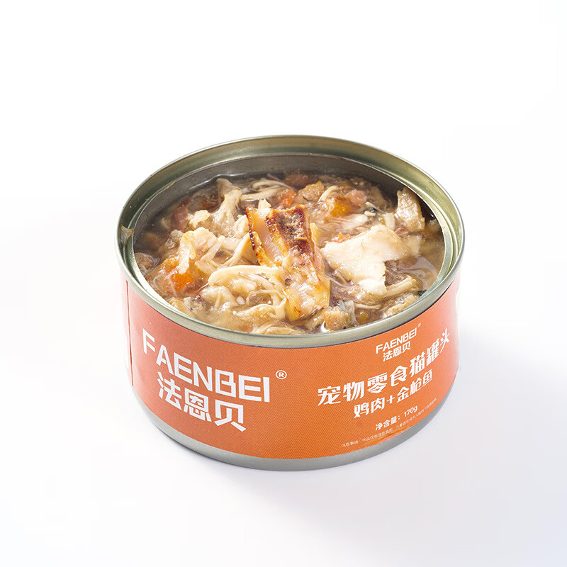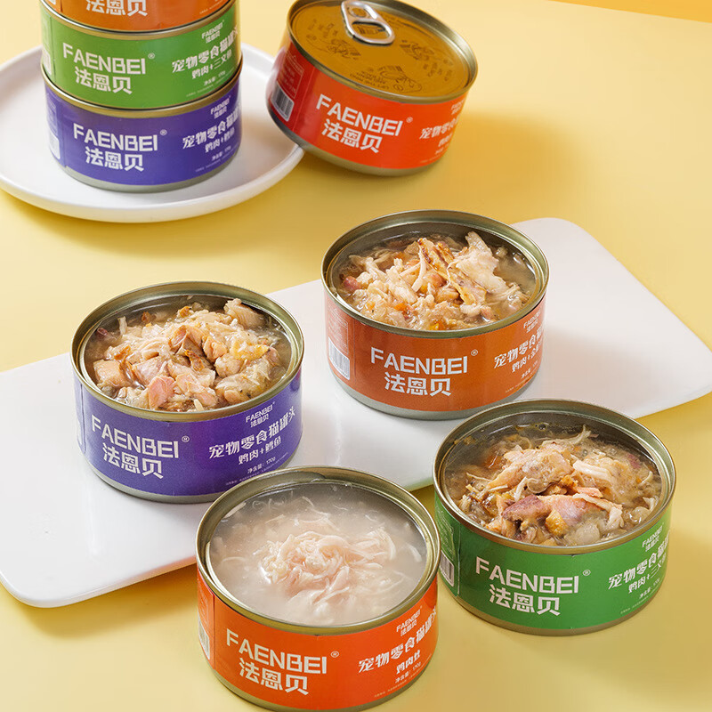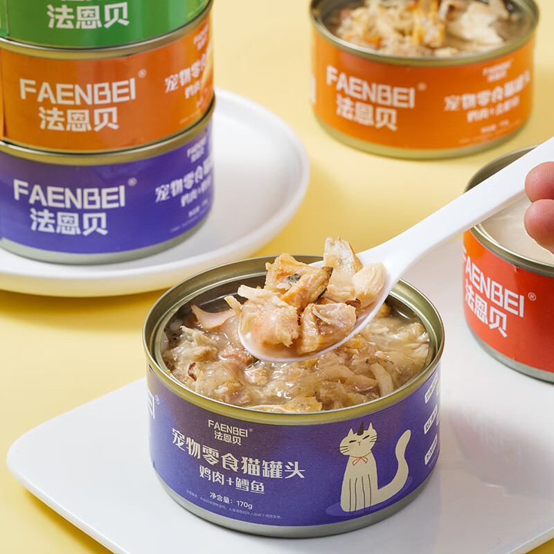 法恩贝(FAENBEI)猫罐头宠物猫咪主食170g金枪鱼幼猫成猫营养湿粮 白肉鸡肉三文鱼 6罐