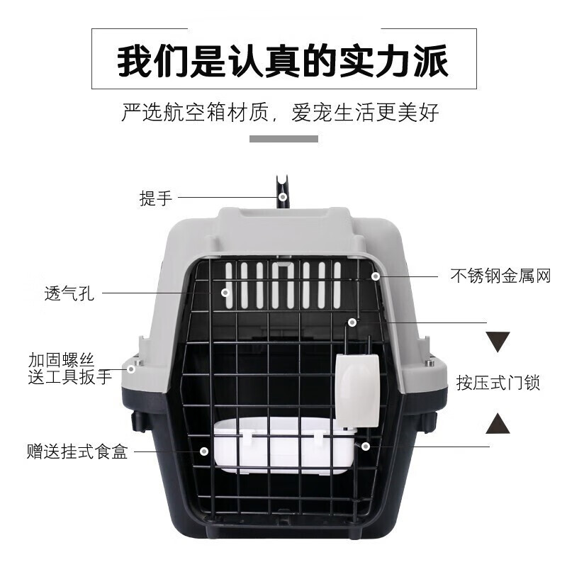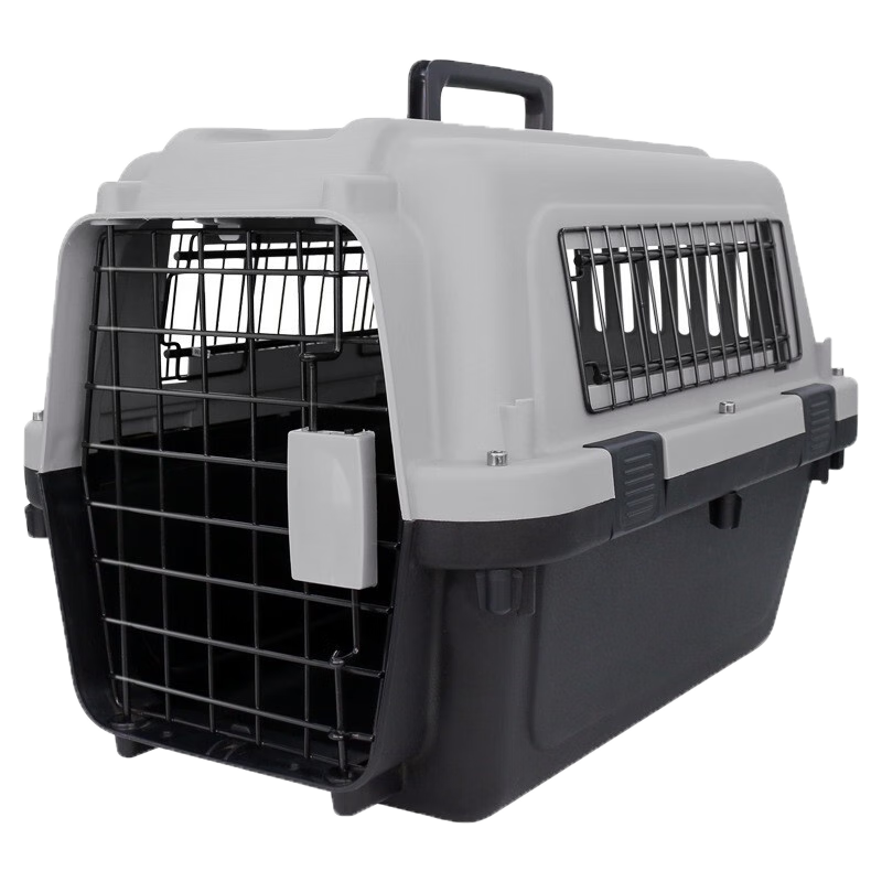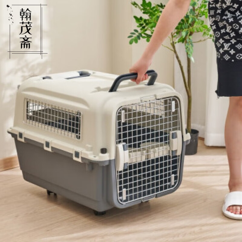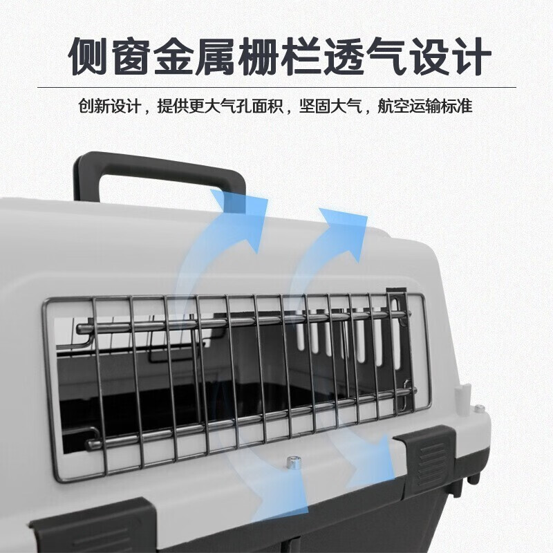 乖可爱(GUAIKEAI)宠物航空箱国航南航深航托运箱子猫狗旅行箱飞机运输箱子泰迪博美猫狗窝黑灰色3 蓝灰色3号:68*52*51cm-铁窗 轮子