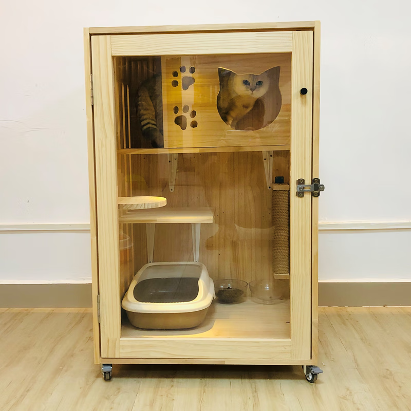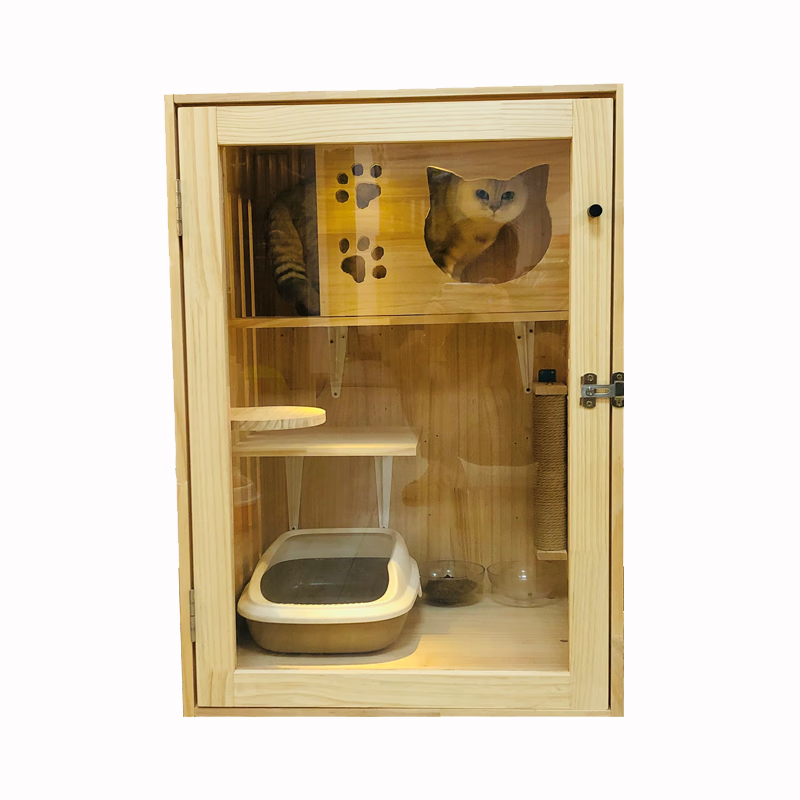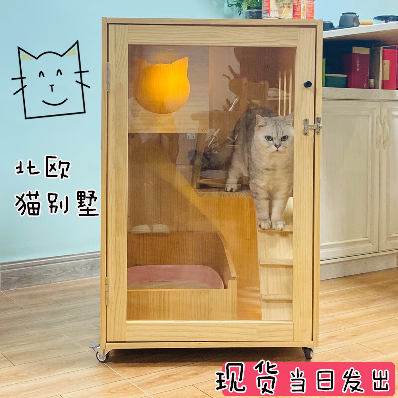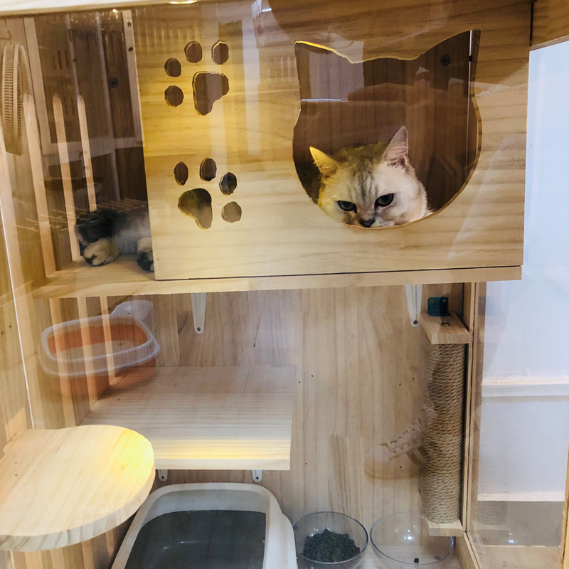 小米城堡木质猫别墅 木质猫笼双猫 猫笼子猫舍豪华猫窝猫柜展示柜双层侧面 小猫窝版左右通风自行安装 提供安装视频 S-小型