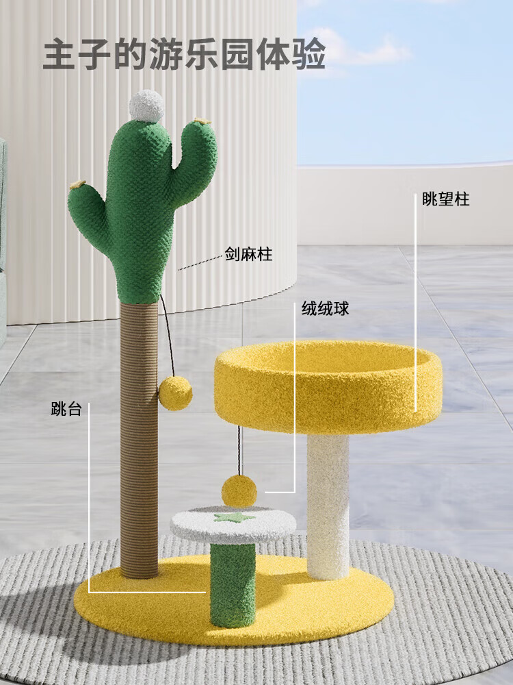 仙人掌猫爬架小型不占地猫架子猫窝猫树一体猫抓柱幼猫咪玩具用品 仙人掌猫爬架(高低窝款)