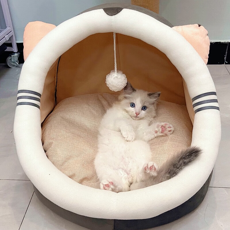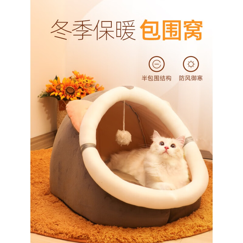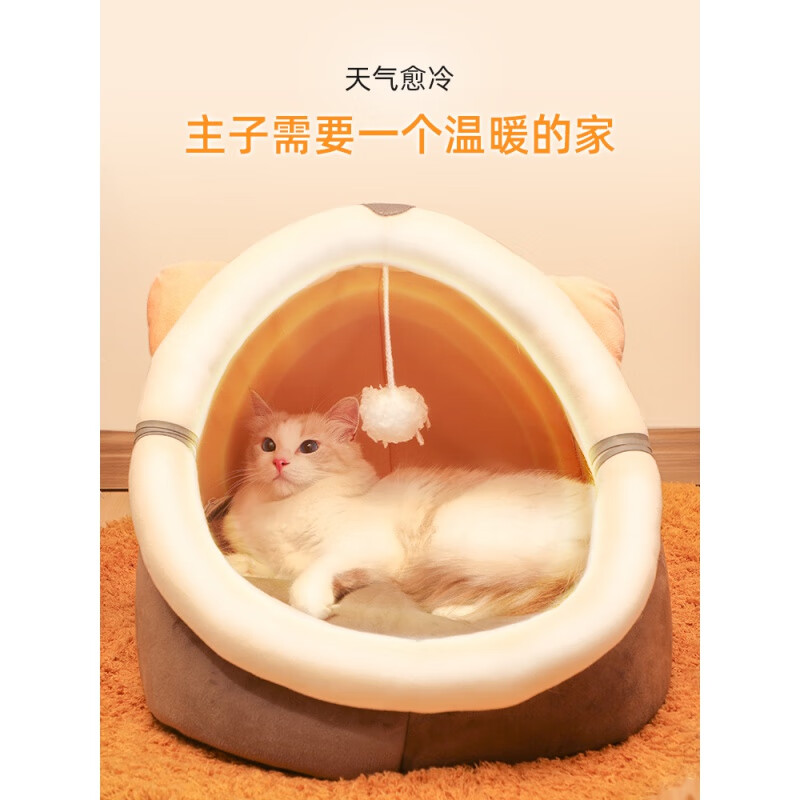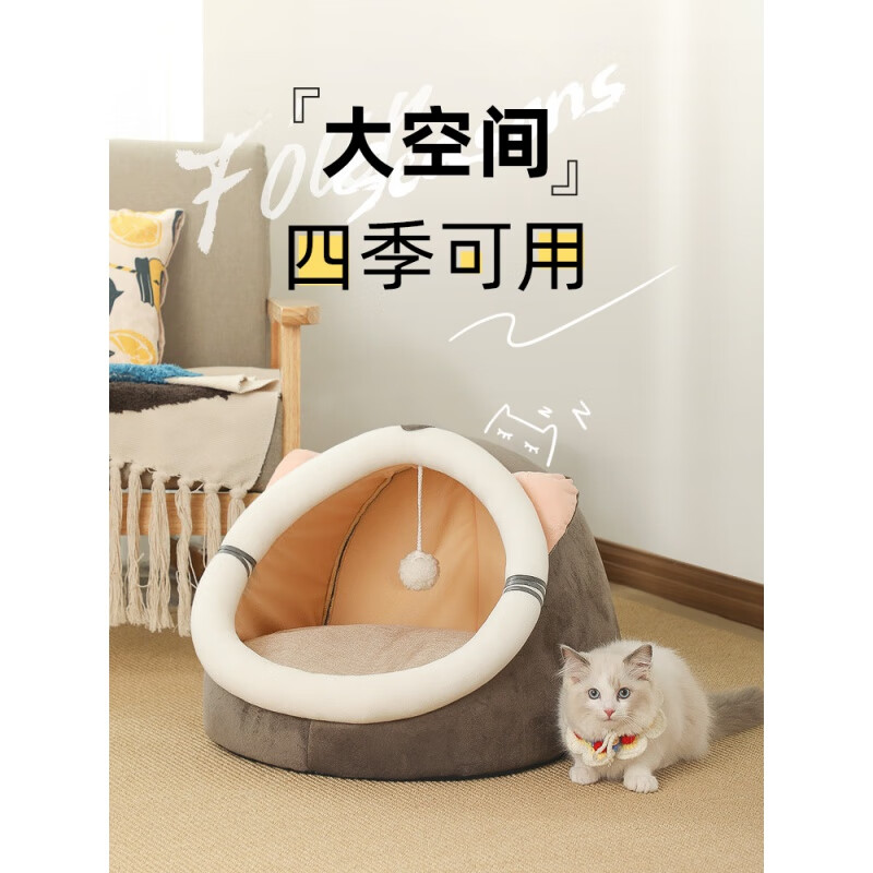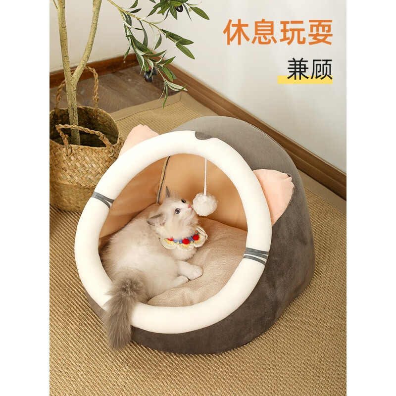 CLCEY猫窝夏天夏季超大猫咪用品猫床狗窝猫屋睡觉的窝半封闭式四季通用 半封闭粉耳猫窝 S-建议8斤内36*36*30
