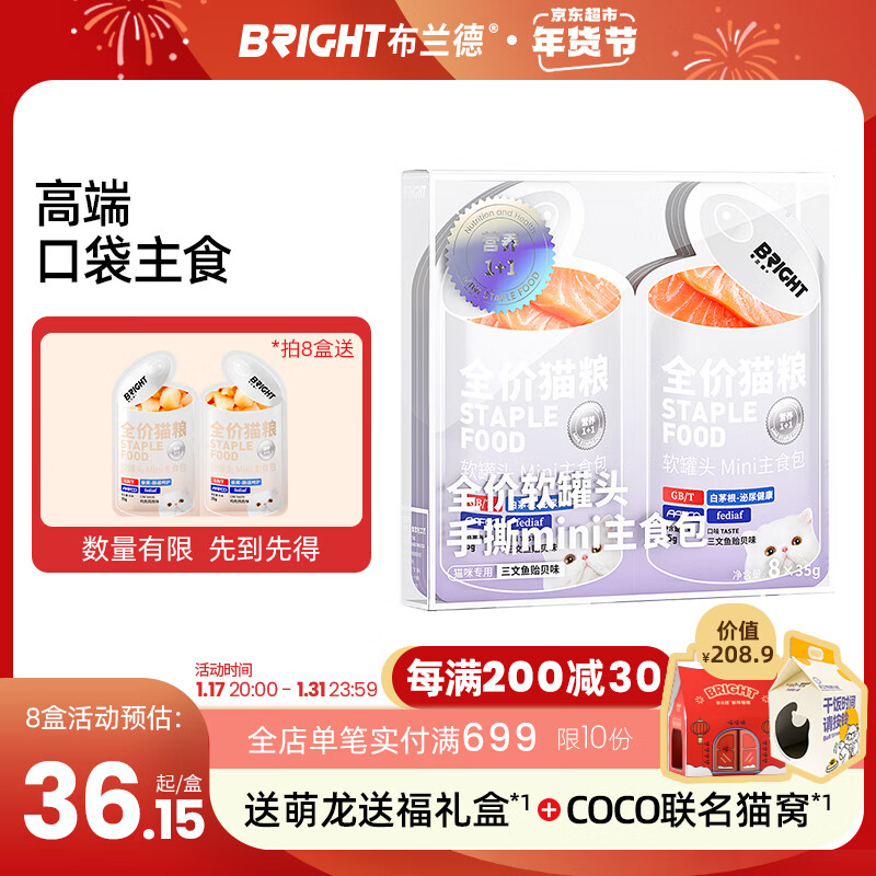 布兰德软罐头猫咪湿粮手撕mini主食罐头白金包营养增肥全肉0内脏 三文鱼贻贝味 280g