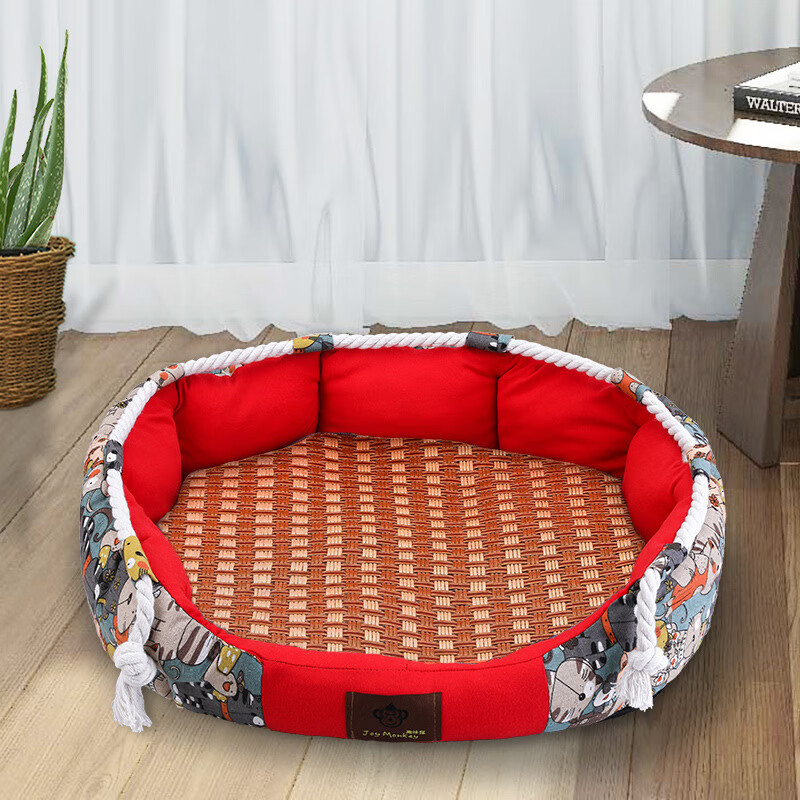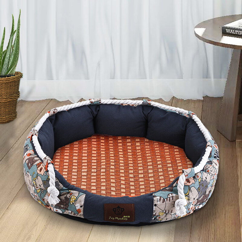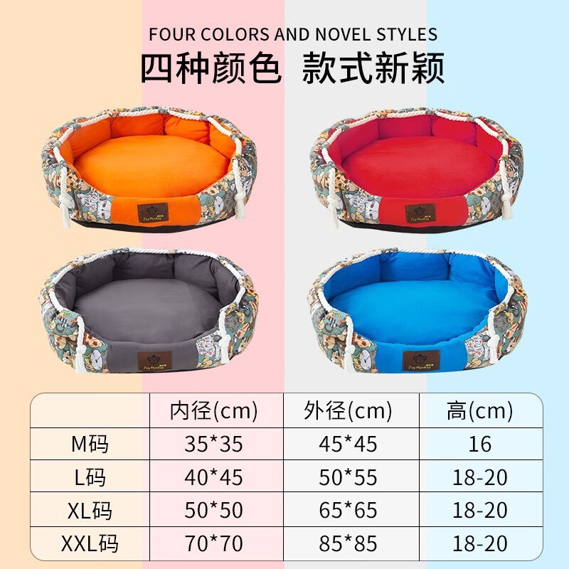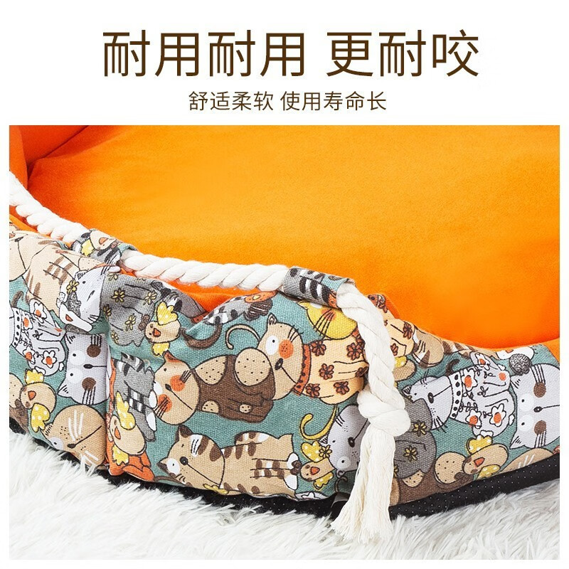 煜宠猫窝狗窝四季通用可拆洗宠物窝猫窝大型中型小型犬狗窝狗床猫床 橙色 凉席 M-中型 【长45 宽45 高16】适用6