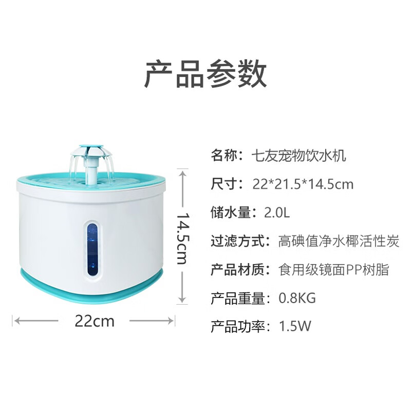 七友猫咪饮水机 自动循环饮水器宠物饮水机智能猫喝水喂水器猫水盆 宠物狗狗猫咪用品 带LED灯防干烧2L款