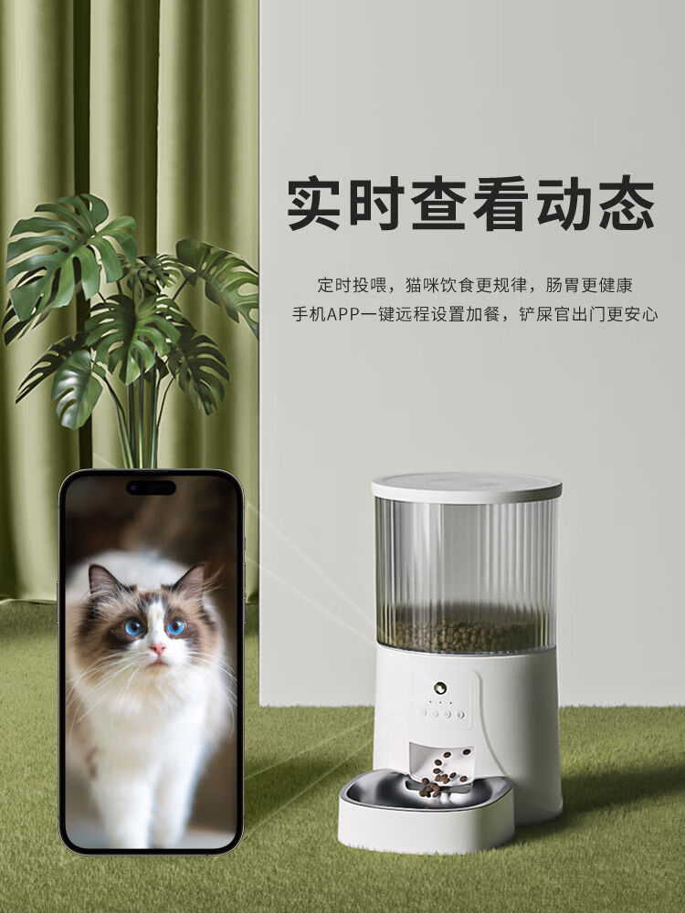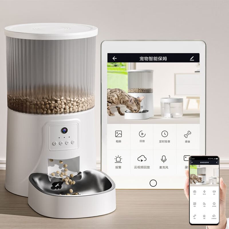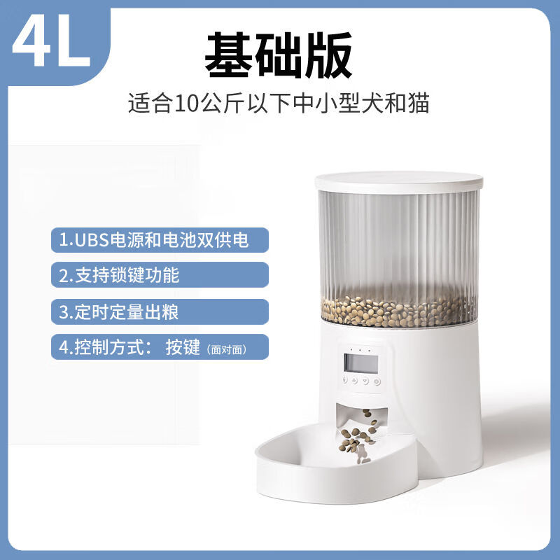 珊野【定时定量】自动喂食器猫咪宠物小狗智能猫狗粮电动投食机带监控 基础版【面对面】 4L宠物喂食器(无钢碗)