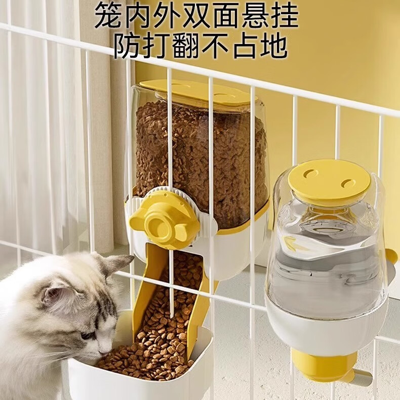 殊福傢猫咪饮水机挂式自动喂食器宠物笼子悬挂狗狗喝水器喂水不湿嘴水壶 【奶油黄】重力饮水器1000ml 通用