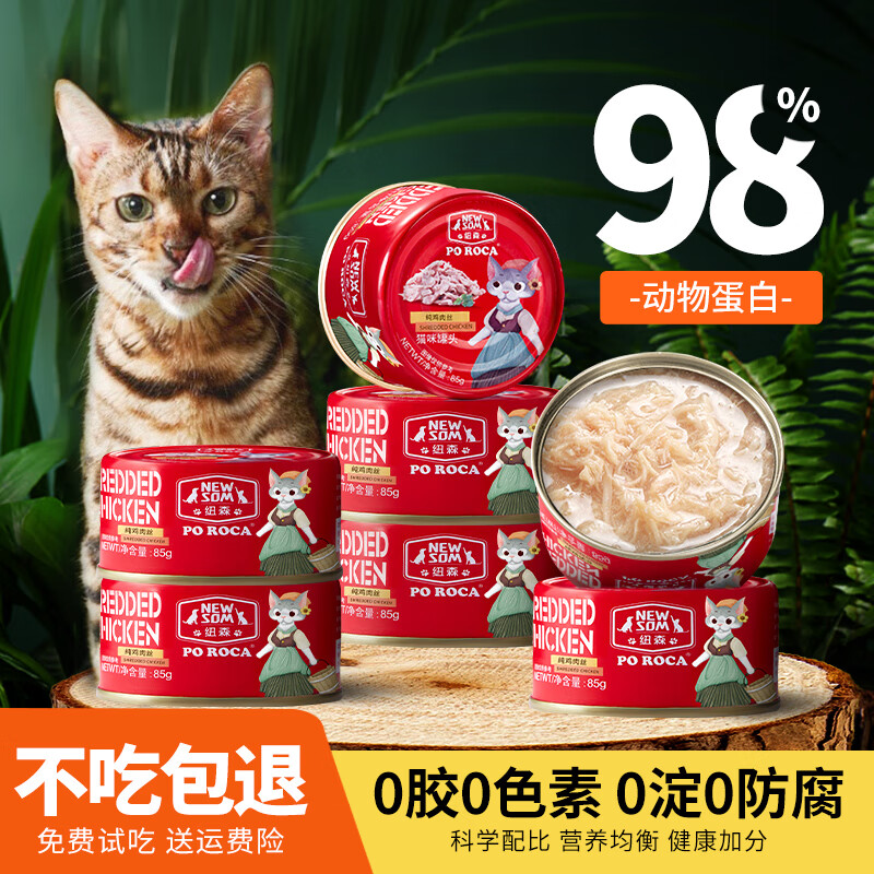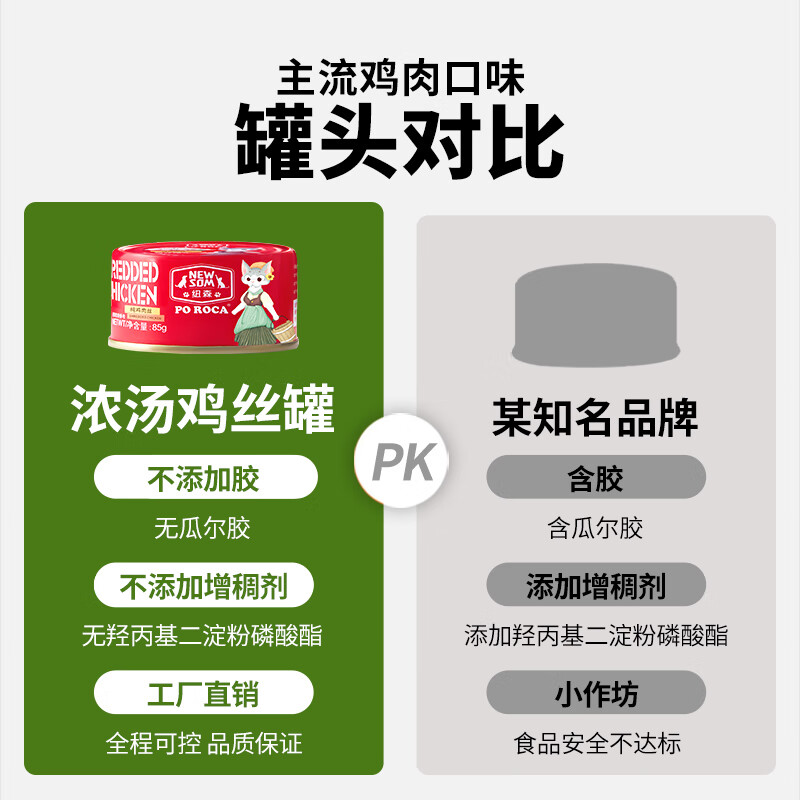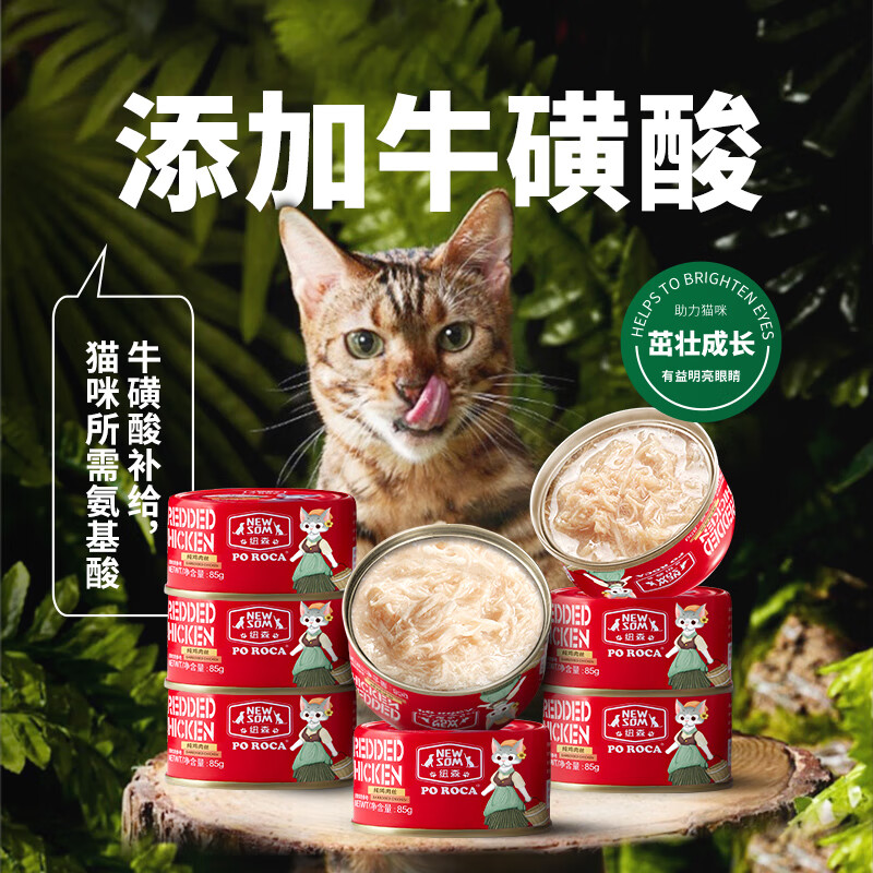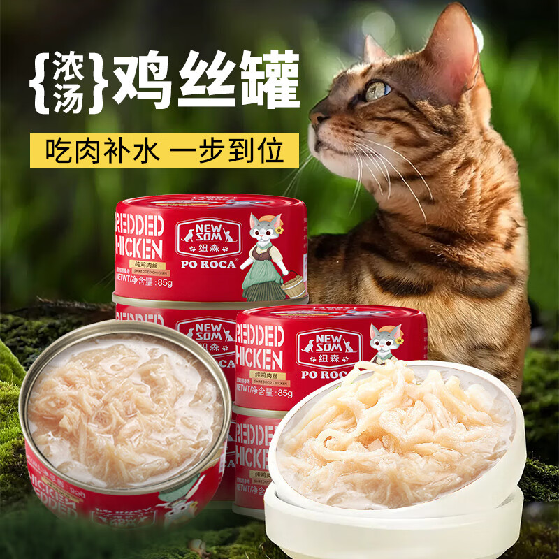纽森纽森猫罐头85g成幼猫浓汤鸡肉丝宠物零食营养增肥补水白肉罐整箱 鸡肉丝85g*5罐