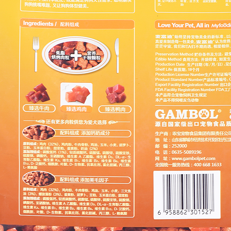 麦富迪鸡肉肉粒粮1.5kg鸡肉美毛颗粒双拼粮泰迪贵宾犬比熊成犬粮