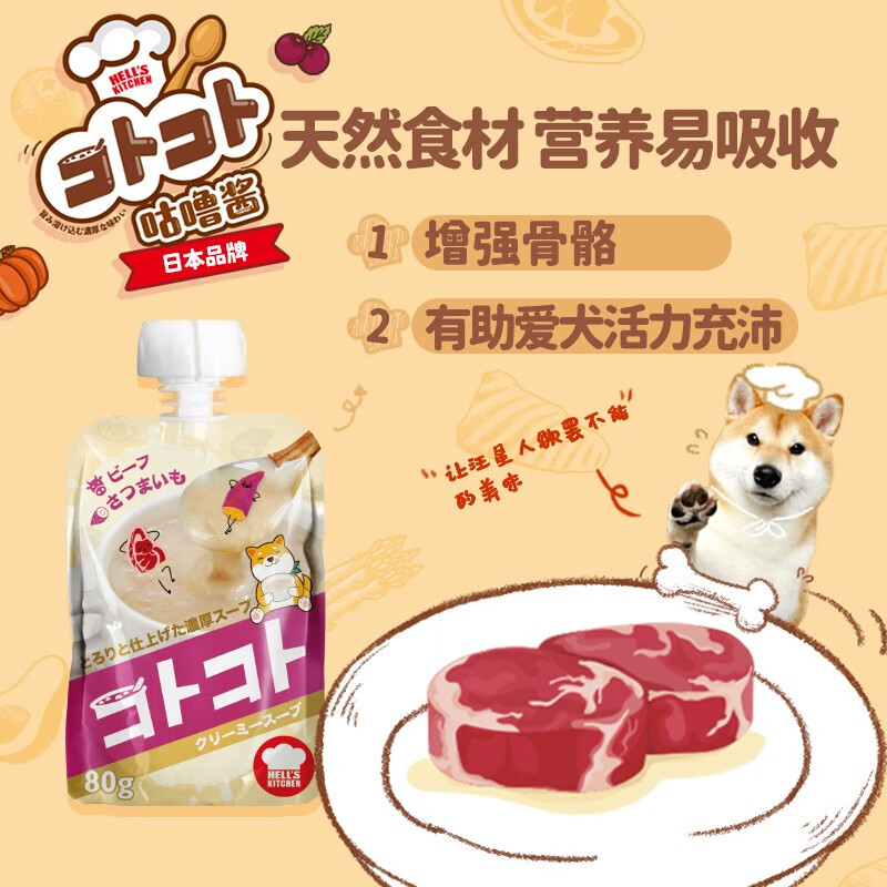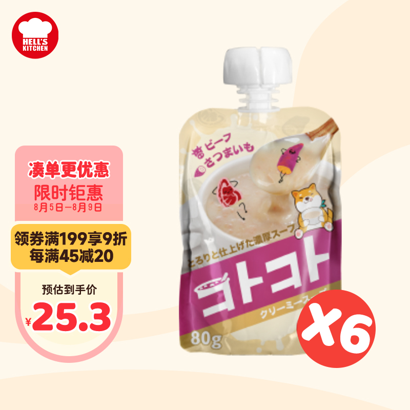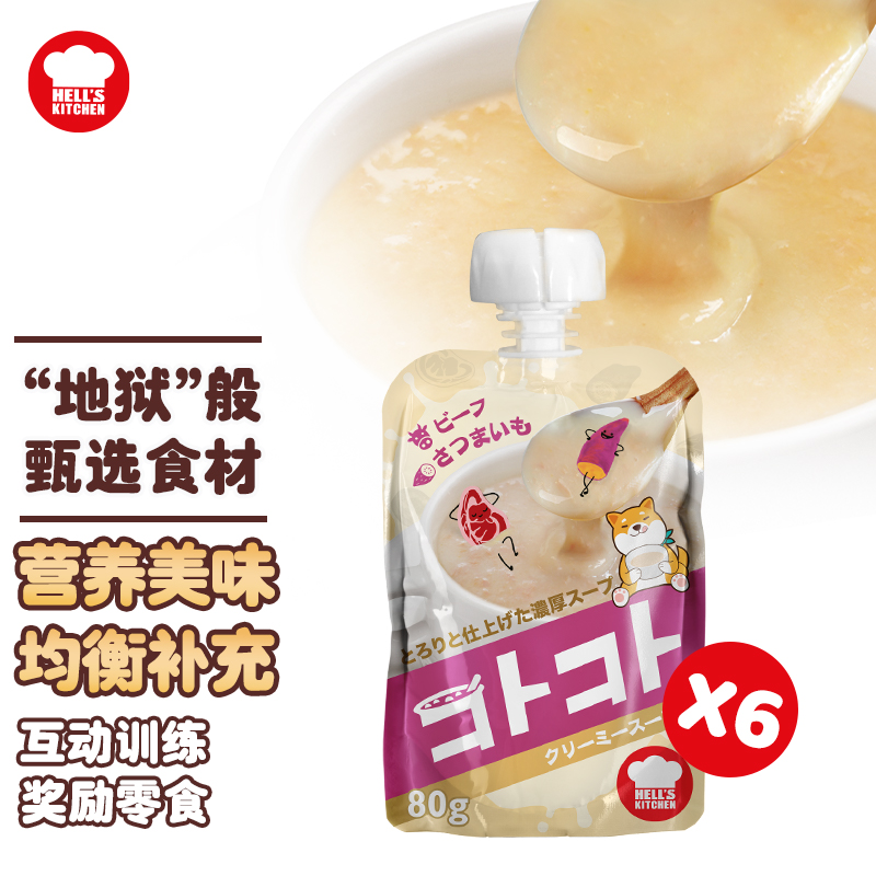 地狱厨房(Hell's Kitchen)成犬用浓汤牛肉甜薯奶油味80g*6袋装