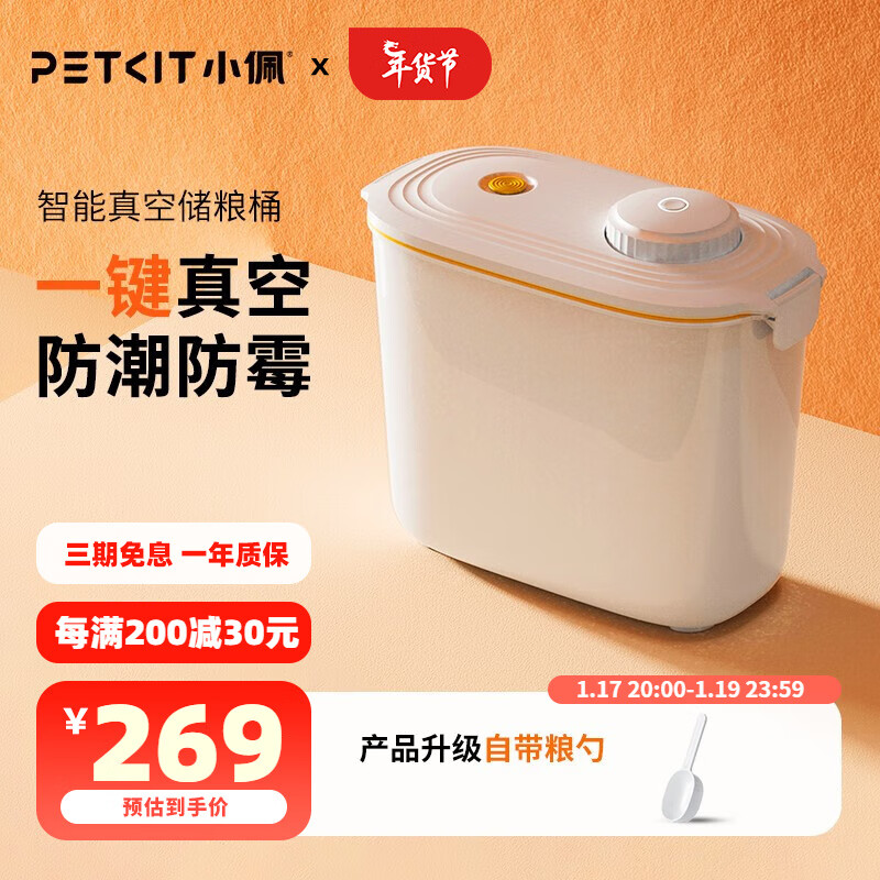 小佩智能真空储粮桶 大号猫粮狗粮储存桶 真空存储桶 密封防潮防虫 象牙白(约存5.4KG)