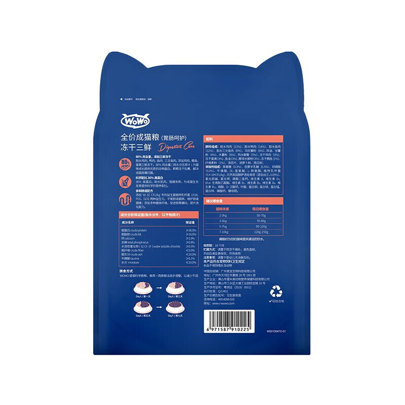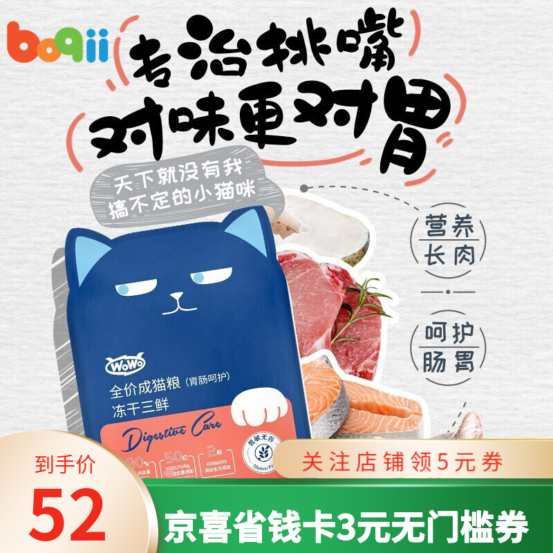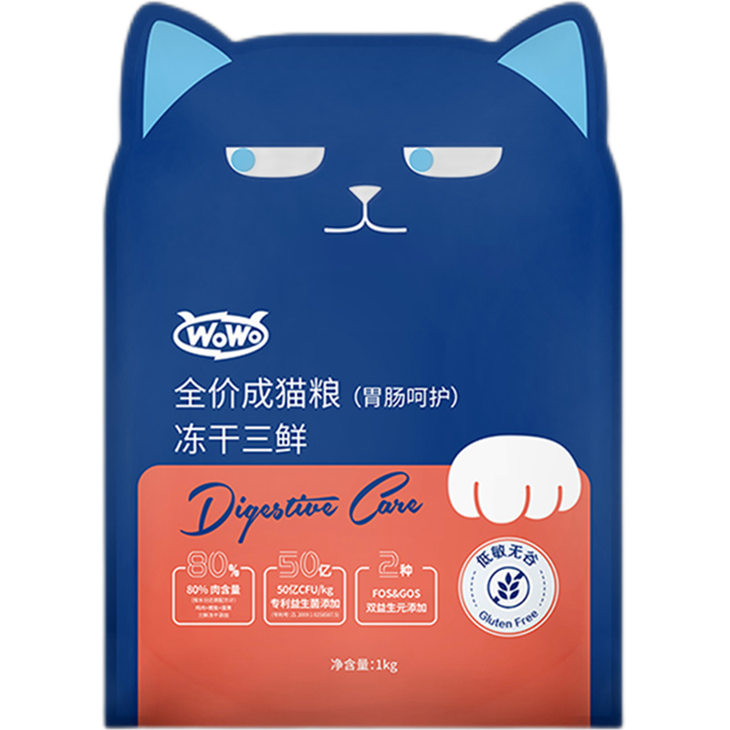 WOWO喔喔猫粮 无谷冻干三鲜全价猫粮 成幼猫主粮增肥美毛去毛球猫干粮英短布偶通用 成猫粮1kg