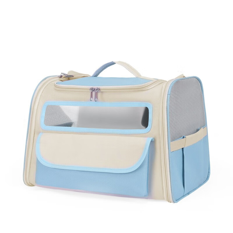 逗点熊猫包大容量外出便携夏天折叠猫咪外出包单肩手提轻便宠物背包 蓝色