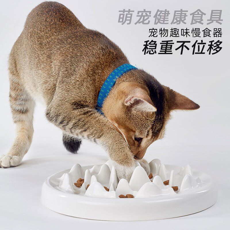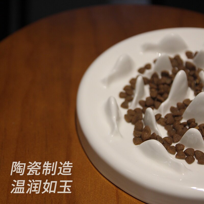 猫咪慢食碗狗狗陶瓷慢食盆防噎缓食猫碗狗碗防打翻可水洗宠物碗。