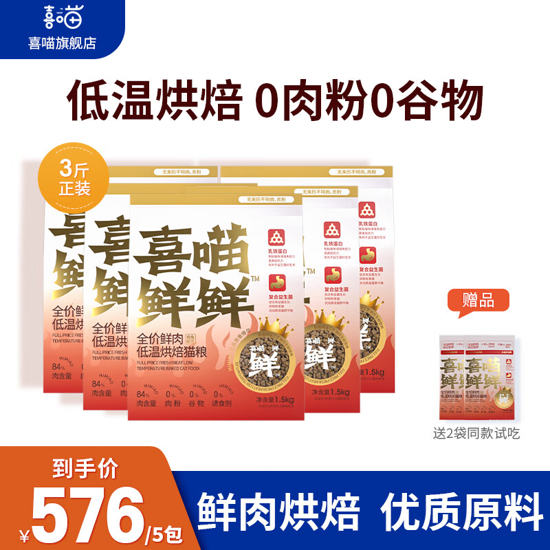 喜喵低温烘焙猫粮天然无谷成猫幼猫奶糕全价鲜肉猫主粮高蛋白烘焙粮 【高端三拼烘焙猫粮】1.5kg*5包