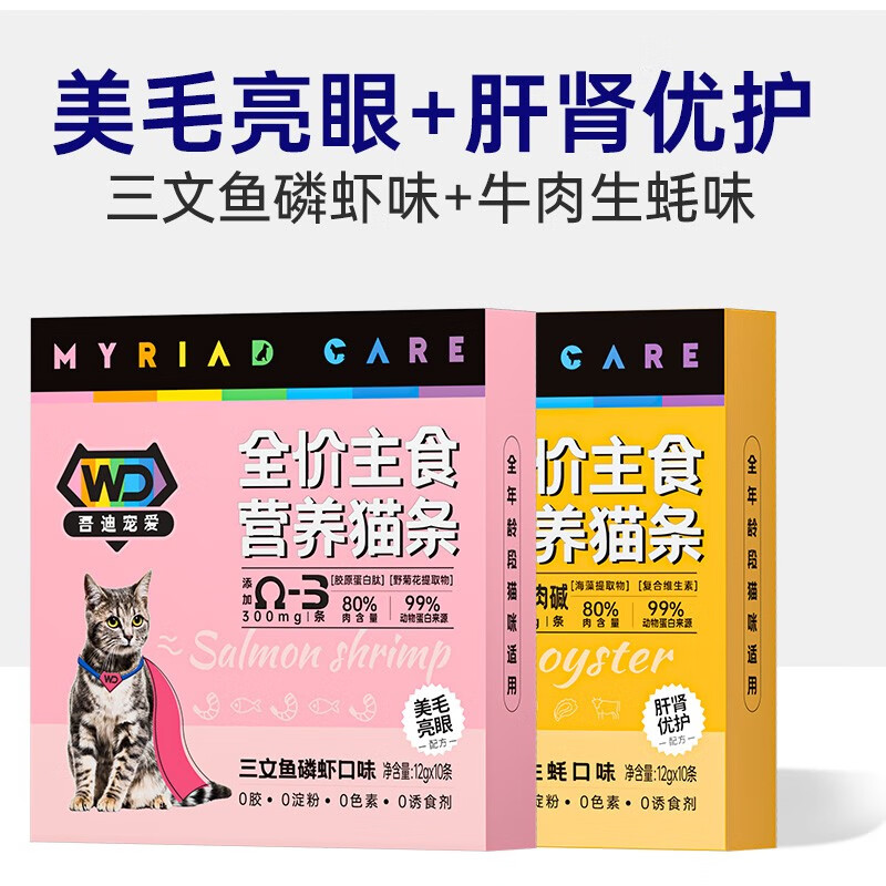 吾迪宠爱鱼油猫条零食主食宠物营养鱼油纯肉泥增肥发腮成幼小猫 美毛亮眼 肝肾优护