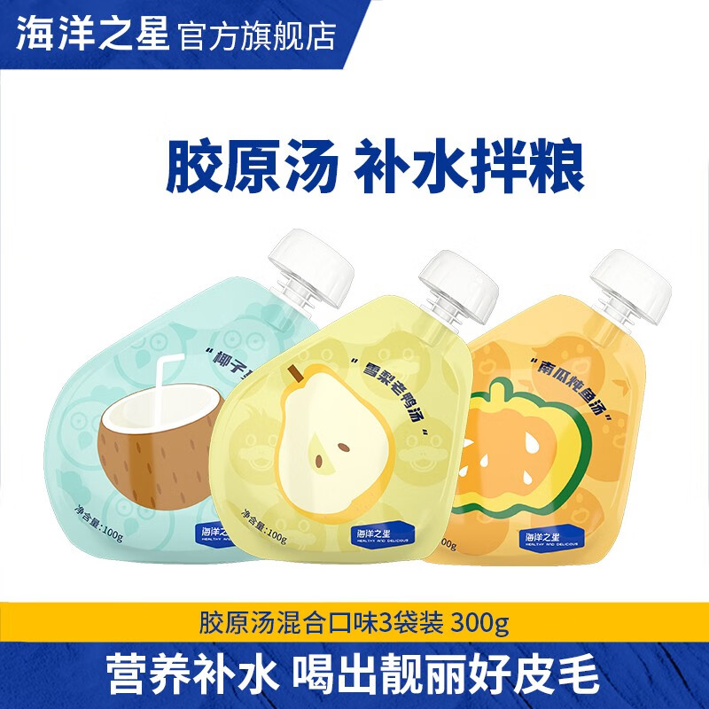 海洋之星 宠物猫狗零食即食胶原浓汤包幼猫狗狗零食湿粮罐头营养品补水 汤包混合口味 100g*3(新)