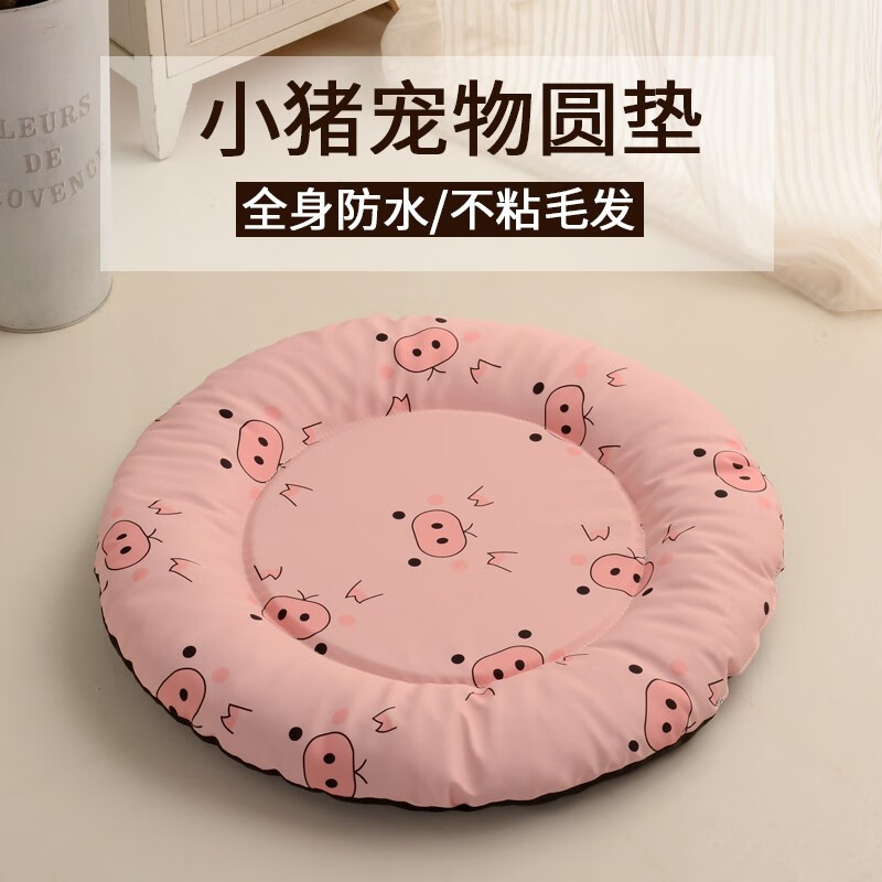 汪汪部落猫狗垫子睡垫圆形狗窝四季防水不沾毛宠物用品睡觉用地垫猫窝垫子 幸福小猪-圆形 S(适合5斤内犬猫)